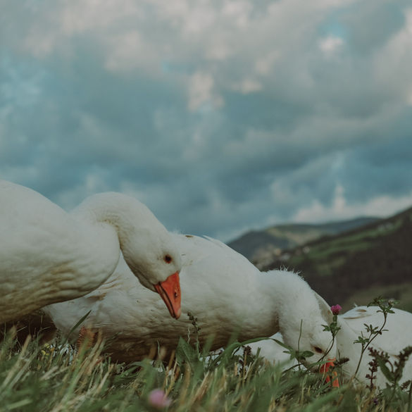 Jedes Jahr von Mitte Mai bis Mitte November lebt auf den Hügeln des Kasserolhofs eine Gänseschar – die Villnösser Weidegänse. Unsere Weidegänse machen ihrem Namen alle Ehre, denn ihren Tag verbringen sie am liebsten unter freiem Himmel. Fressen frische Gräser, lassen sich die Sonne aufs Gefieder scheinen oder laufen schnatternd über die Weiden.